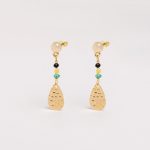 Fines et légères, les boucles d’oreilles Eris offrent aussi bien un look chic que décontracté. Les gouttes martelées permettent de mettre en valeur les pierres minérales et rehaussent leur lumière.